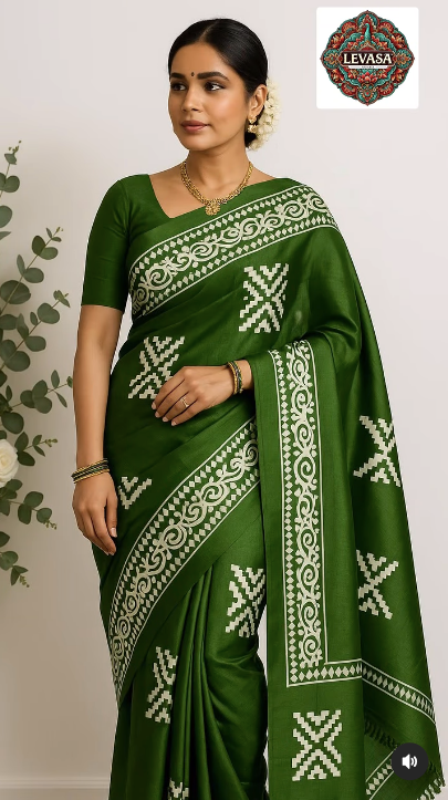 Vibrant Silk Yellow & Olive Green Floral Saree with Unstitched Blouse Piece