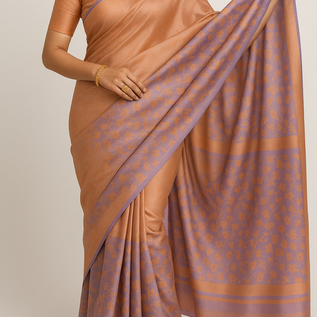 Silk Peach & Lavender Floral Saree with Unstitched Blouse Piece