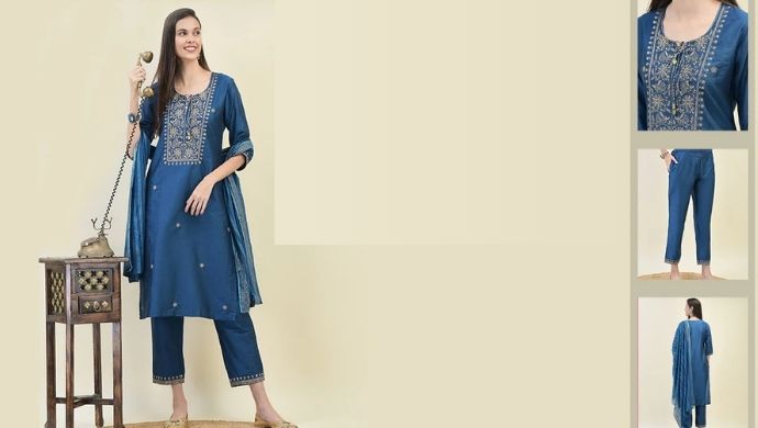 Indigo Blue Handblock Print Cotton Salwar Suit Set for Women – 3 Piece Kurta, Pant & Dupatta