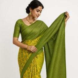 Vibrant Silk Yellow & Olive Green Floral Saree with Unstitched Blouse Piece